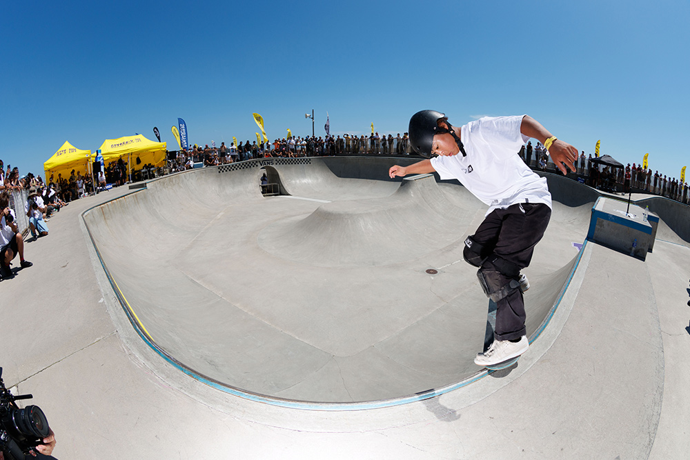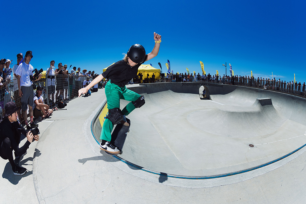 アールでは「バックサイドブラントスライド180アウト」を鮮やかに決め、ディープエンドでは「バックサイドボディーバリアル540」をメイク。思わずガッツポーズが飛び出すほどの一撃で会場を沸かせた。